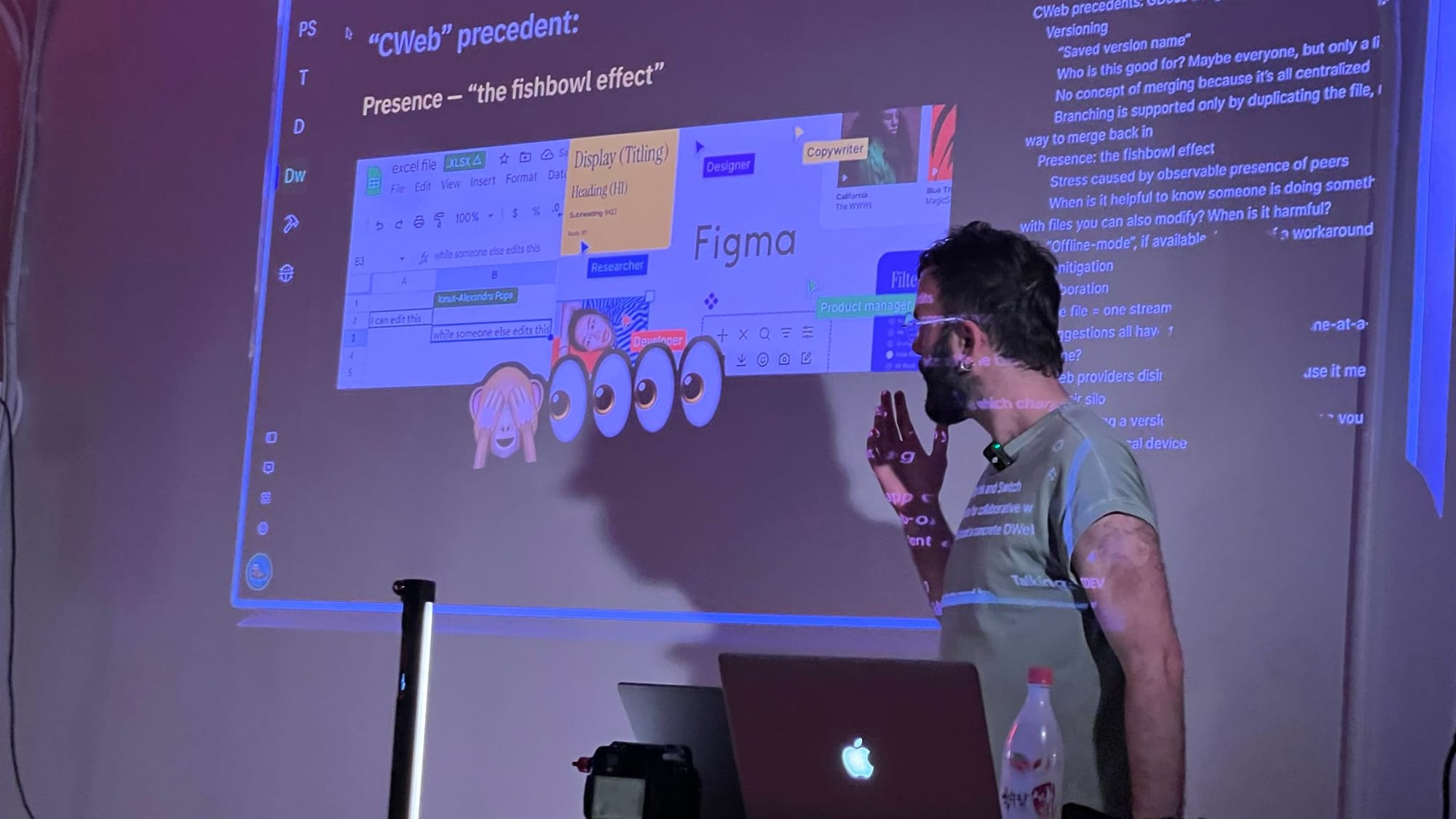 Our co-organizer, Will, kicked it off with his thoughts on "UX for the DWeb," considering his work on collaborative editing software, especially regarding the software he helps create at DXOS.
