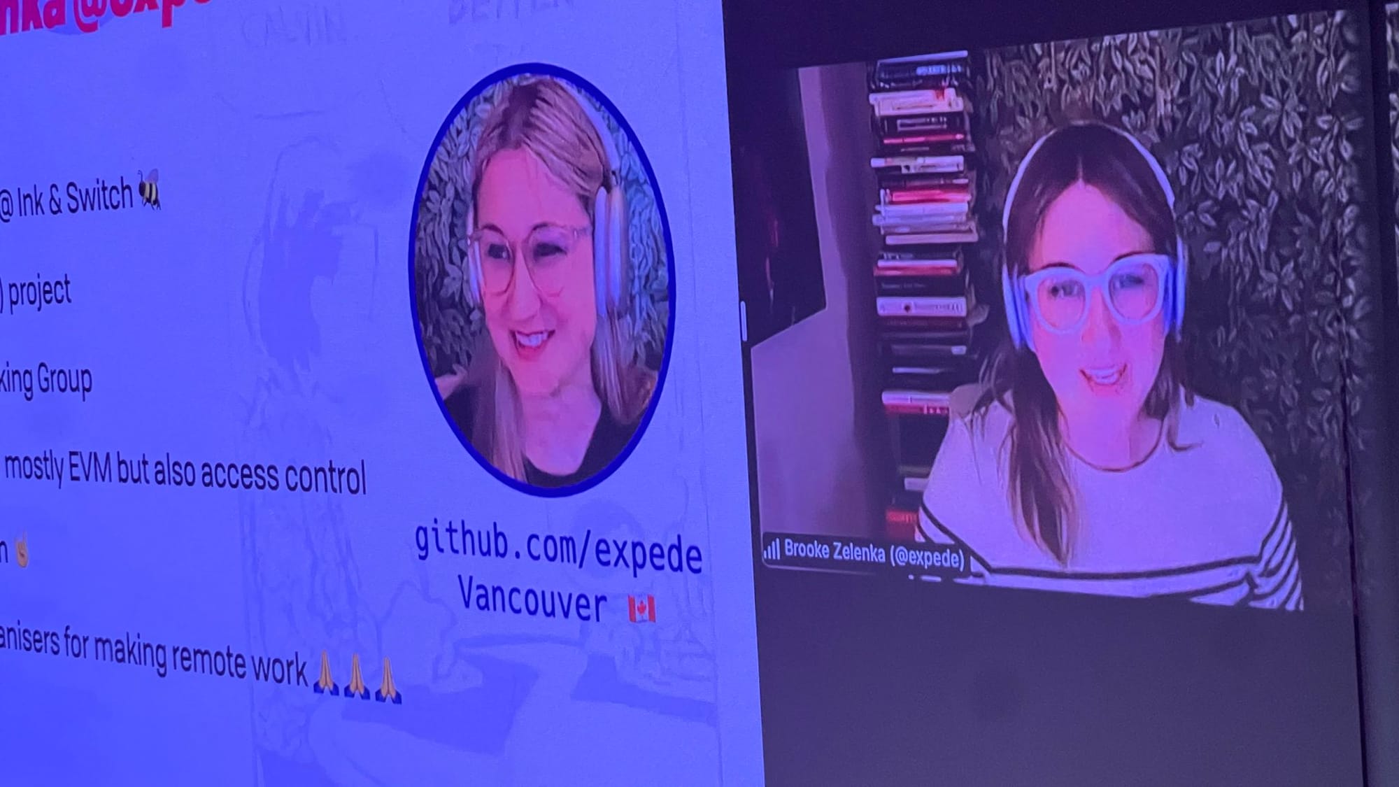 To close the talks part of the event, Brooke enlightened us about the nuances of authorization on the DWeb in a talk she called "Who Authorizes the Authorizers? Advances in data and identity ownership." Brooke has been working for a while on the Auth world and is contributing to the encryption layers for the local-first software developed by Ink & Switch.