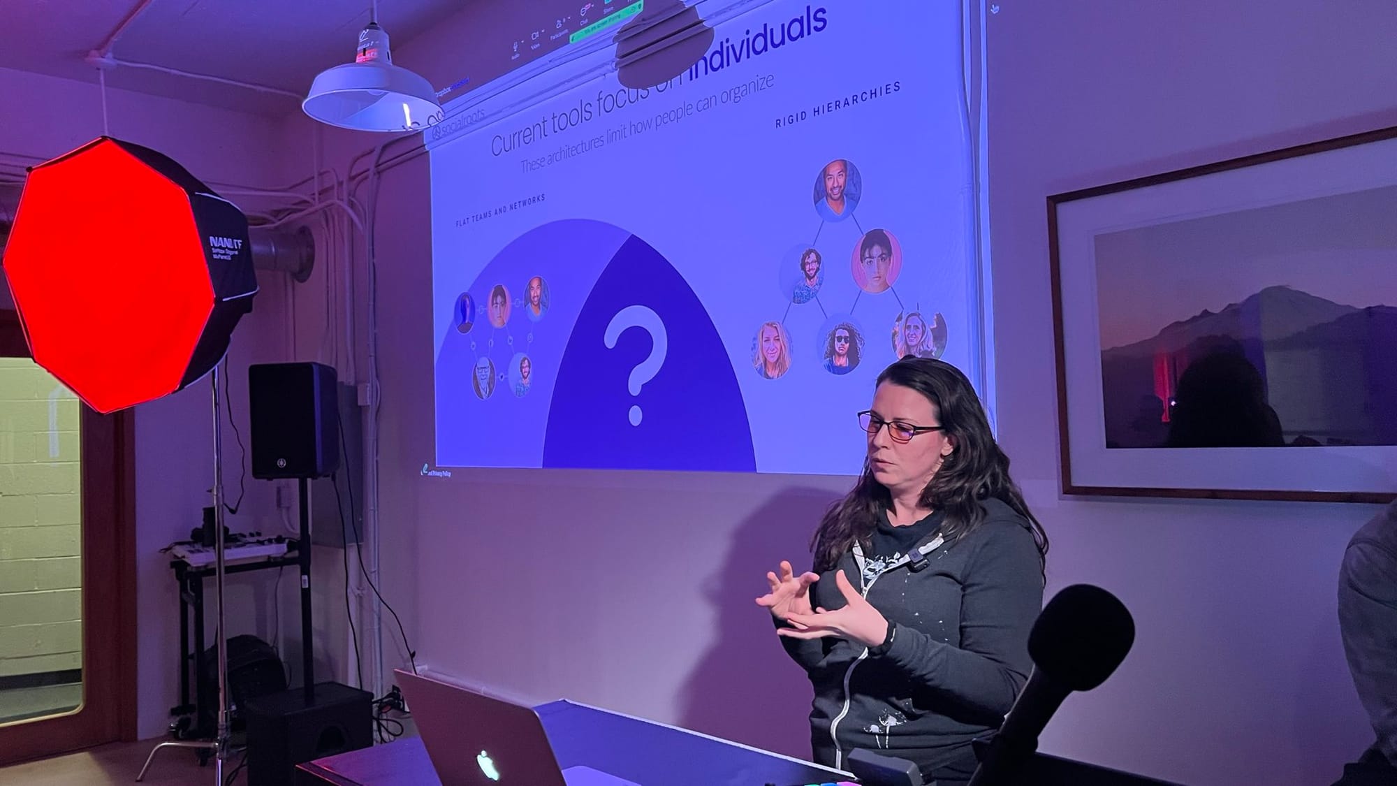 Following a quick break, Ana presented her ideas on "Un-breaking our social networks," which is part of her work at SocialRoots. Here, she explores how the concept of "Intimacy Gradients" has inspired the creation of a whole online platform to facilitate coordination across a network of institutional collaborators.